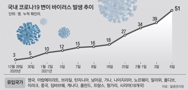 21년 02월 현재 국내에도 유입되어 총 51명의 변이바이러스가 발생되고 있는 상황이네요.