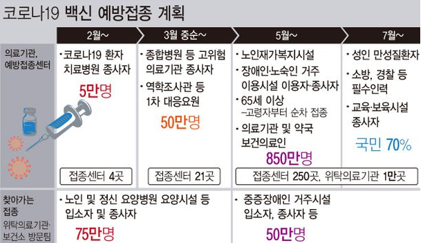코로나19 백신 예방접종 계획 ( 출처:질병관리청 ) 이는 인구의 70%이상이 항체가 생겨야 백신의 효과를 기대할수 있어